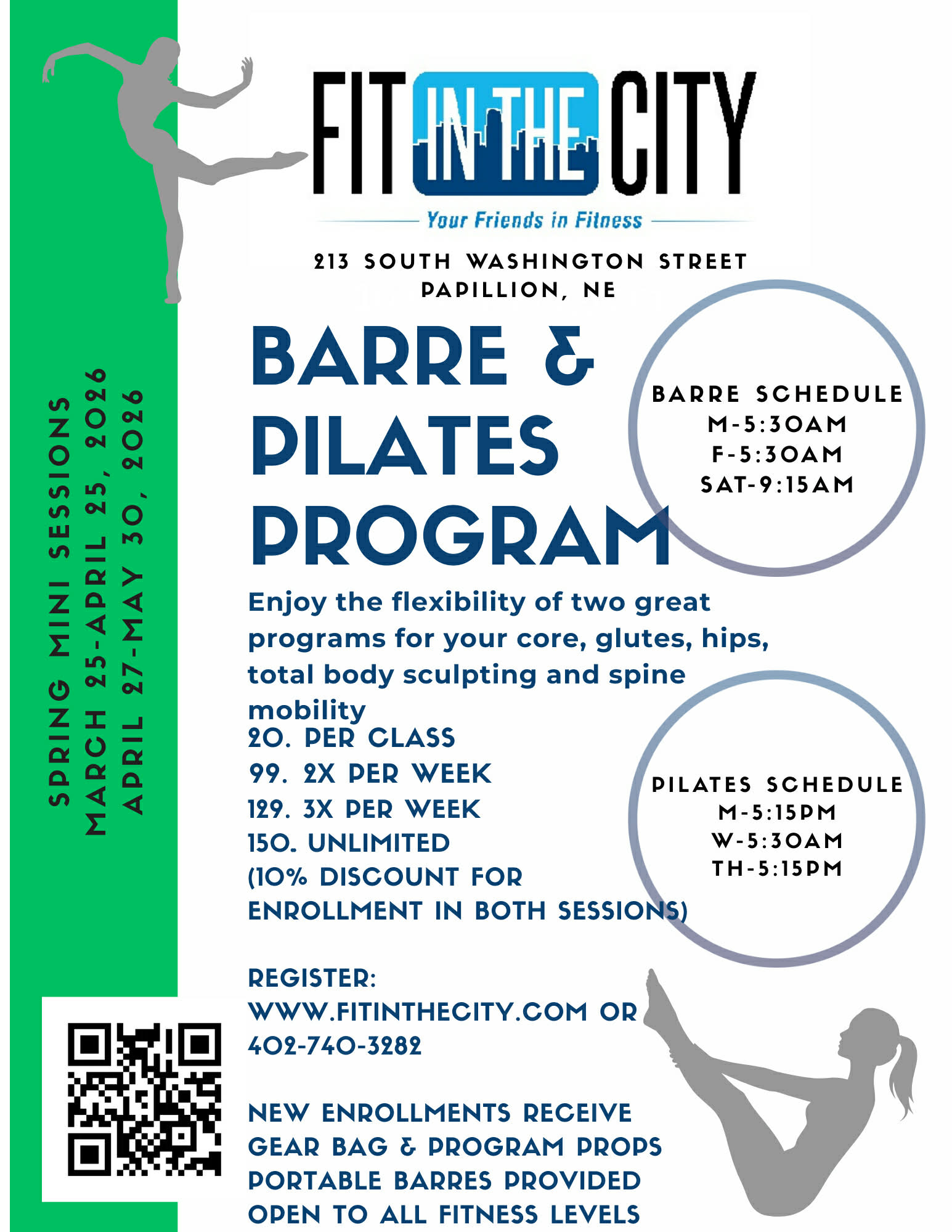 Join us for Barre, Pilates & Yoga class on our Current schedule posted at www.fitinthecity.com